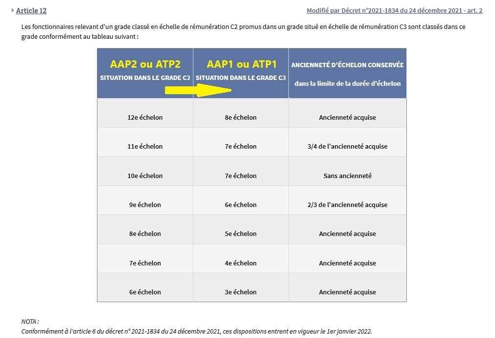 • Avancement de ATP2 à ATP1 : ATP2 échelon 8 depuis le 21 février 2022 pour le dernier promu ;